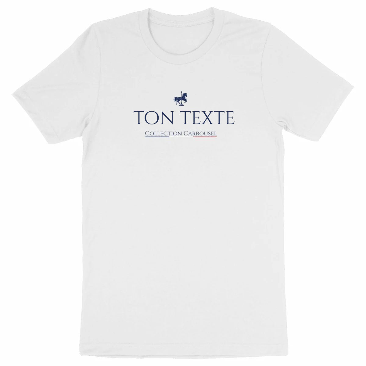 Crée une pièce unique qui te ressemble avec notre t-shirt homme personnalisable Collection Carrousel ! Ce modèle te permet de faire inscrire par exemple le nom de ton cheval, une discipline équestre, un mot symbolique de l'univers du cheval, ou même ton nom utilisé sur les réseaux sociaux. Grâce à nos trois typographies au choix, tu peux personnaliser ton t-shirt à ton image, pour en faire un vêtement exclusif qui porte ta touche personnelle.